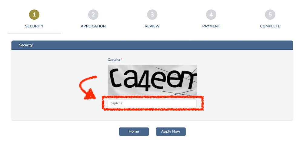 *NOTE: If you receive a message saying the captcha code is incorrect, it means the letters and numbers you entered didn’t match the ones shown on the screen. Be sure to enter the code exactly as you see it, paying attention to both lowercase and uppercase letters. A new code will appear each time you try, so enter the new code and click “Apply Now” until it goes through successfully.