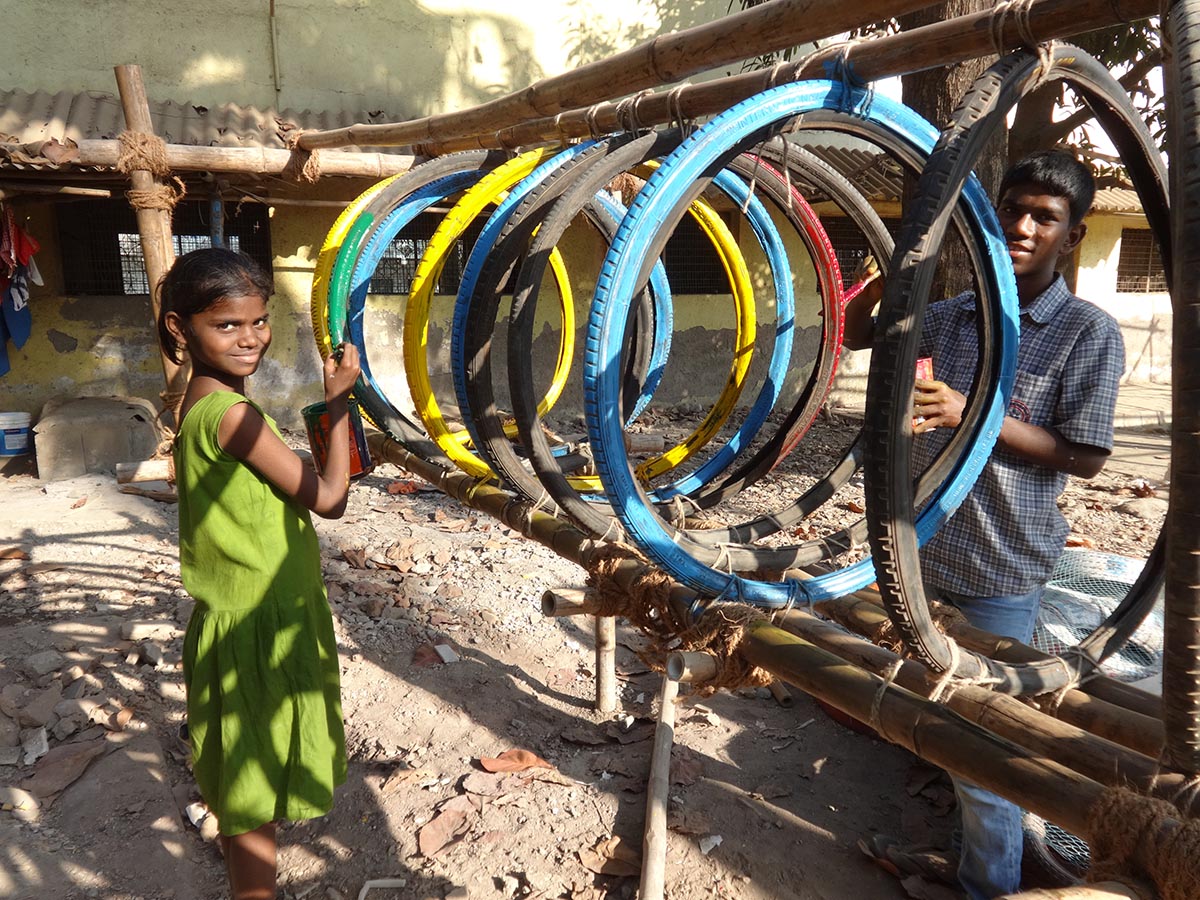 Old bicycle tires/local children’s playground
