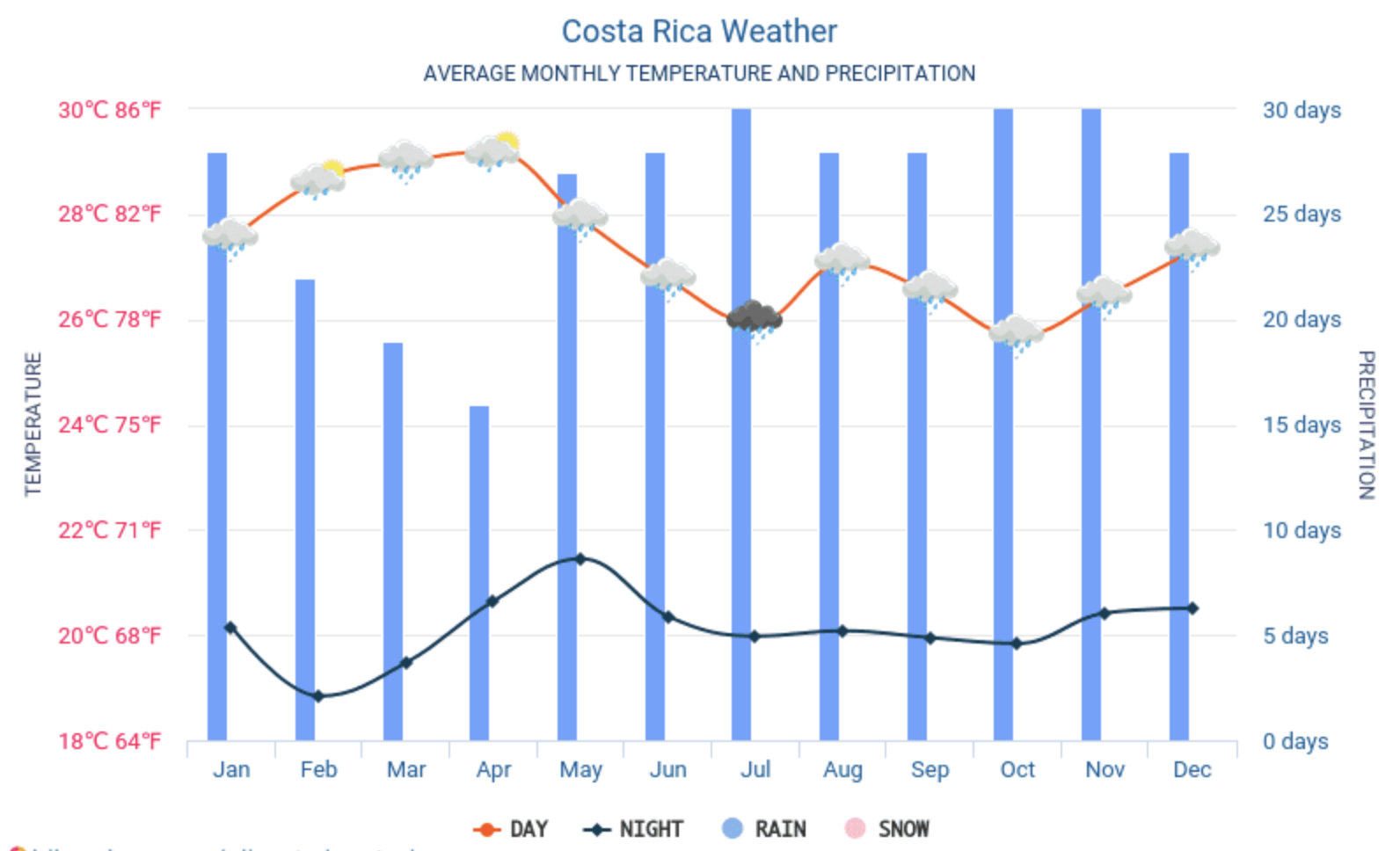 Expect daytime temperatures around 82–88°F (28–31°C) and evening temperatures around 72–75°F (22–24°C).
