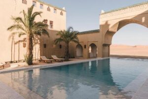 Located at the edge of the Sahara Desert, this oasis-style hotel offers a comfortable base for exploring the surrounding dunes. It combines modern amenities with a traditional desert setting, giving guests a relaxed and authentic experience.